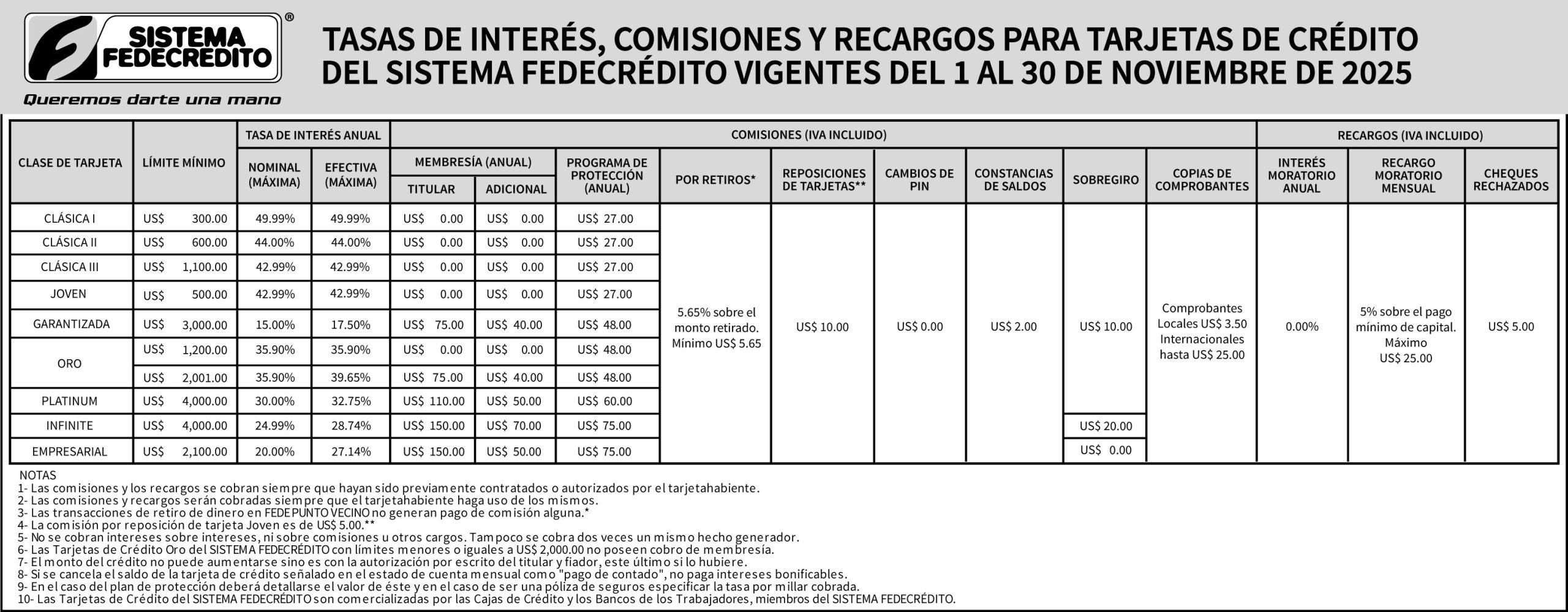 Nota: Información publicada en cumplimiento con el art. 52 de las Normas Técnicas para la Transparencia y Divulgación de la Información en el Sistema de las Tarjetas de Crédito (NCM-04)